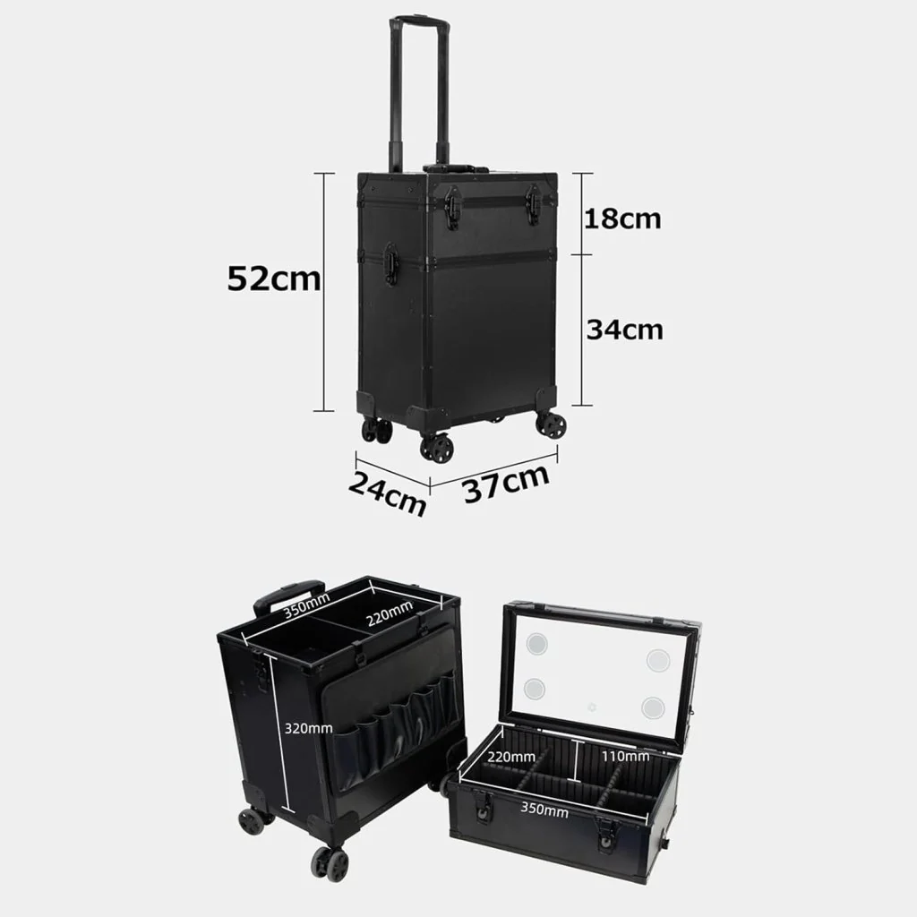Professional follow-up and make-up artist nail art and tattoo toolbox with light, two-stage design, convenient and practical, divided into upper and lower two-stage design, upper layer for cosmetics, lower layer for enlarged items, tools and items, large capacity, can hold a lot.