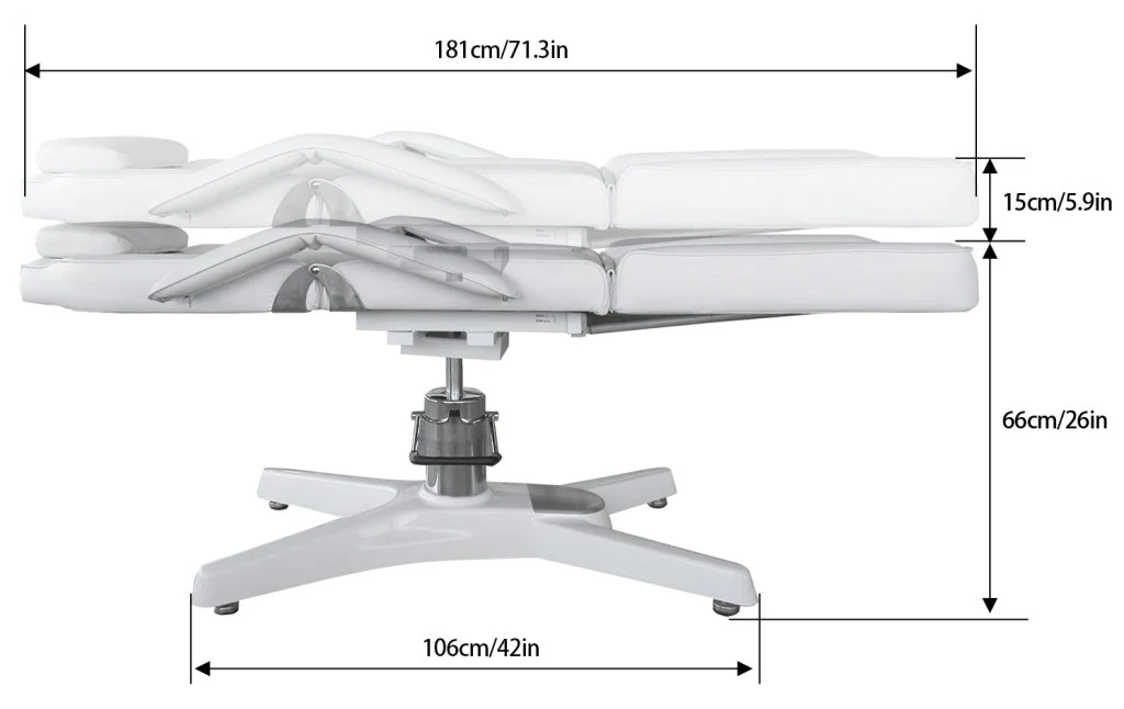 VERSATILE DESIGN: Adjustable backrest and footrest for various beauty services, including massage, facials, tattoos, and hair styling.